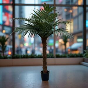 Våra konstgjorda palmer är tillverkade av högkvalitativa material som säkerställer ett realistiskt utseende och lång hållbarhet. De kräver ingen vattning eller skötsel och är lätta att placera och underhålla.