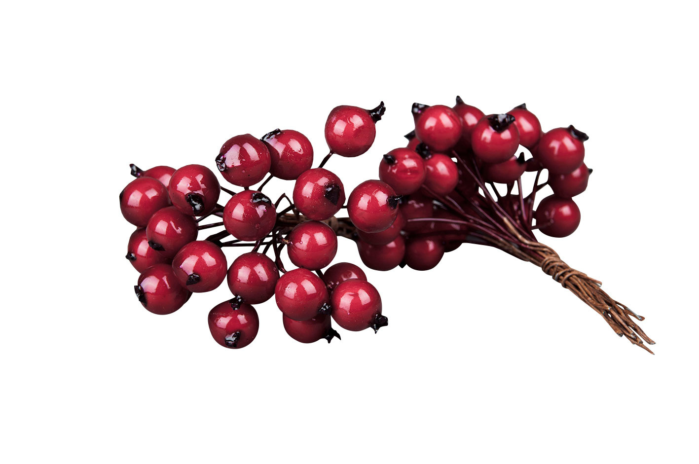 Välgjord kvist med konstgjorda röda bär, för dekoration. bären är monterade på böjbar metalltråd. Perfekt att Sätta i en montera i krans eller i ett arrangemang. Bären sitter på ståltråd som går att forma.