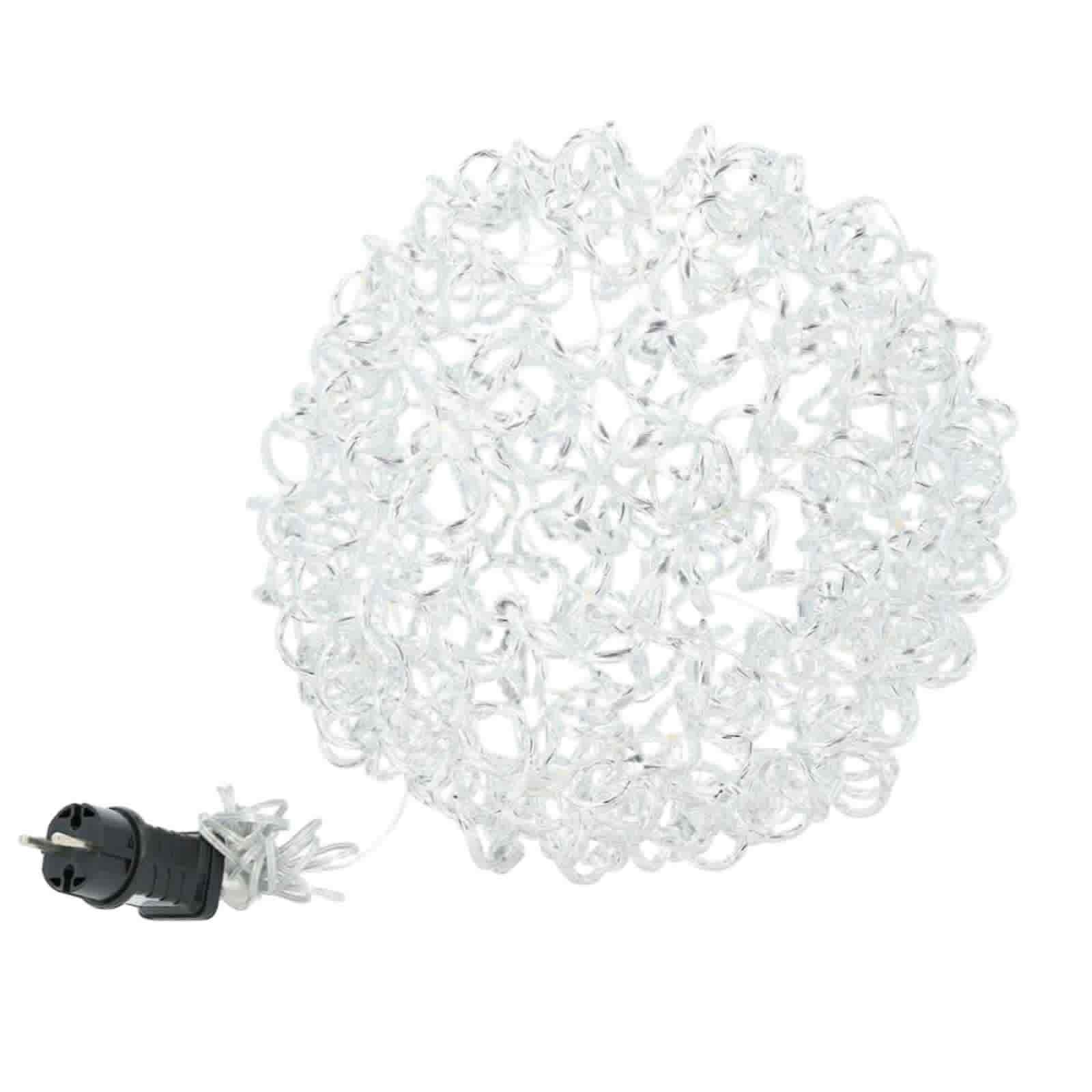 Denna dekorativa boll har en stomme av aluminium och är omsluten av en LED-slinga bestående av 120 LED-lampor som avger ett varmt ljus. Bollen är designad för att ge en stämningsfull och inbjudande belysning. Den har en anslutningssladd som är 5 meter lång, vilket gör det enkelt att koppla in den i ett eluttag och placera den på olika platser i hemmet. Designen är elegant och modern, vilket gör den till ett stilrent tillskott i olika miljöer.