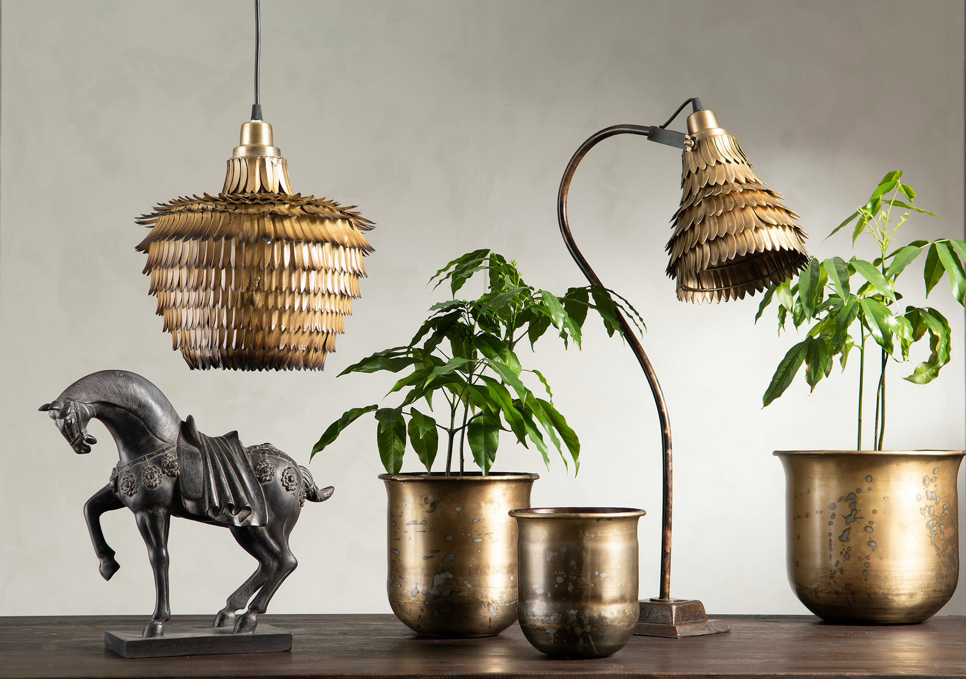 Inspirerande och trendig bordslampa i mässing. Lampan är full av personlighet och karaktär. Lampan har en härlig modern boho-beach känsla.