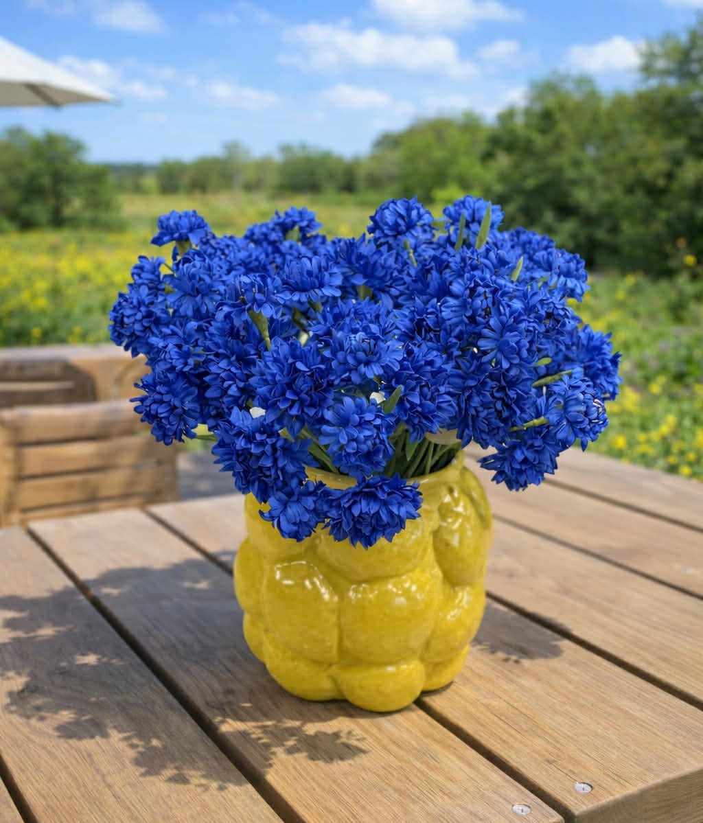 Detta knippe passar utmärkt som dekoration inför midsommar, där den blå färgen vackert kompletterar björk, prästkragar och andra sommarblommor. Den fungerar också perfekt som bordsdekoration på sommarbordet – i en liten glasvas, i flera små vaser längs bordet eller som del av en lantlig dukning. En enkel men elegant detalj som skapar en härlig sommarkänsla.