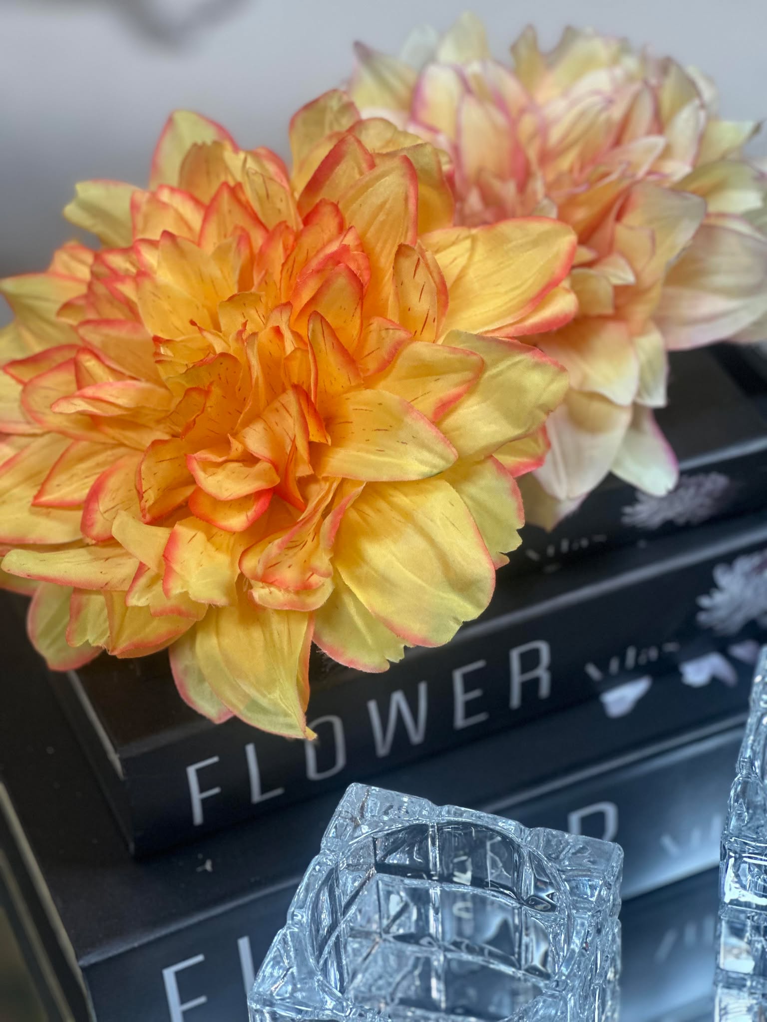 Snygg och lyxig skarp gul blombrosch. En större blombrosch på nästan 16 cm i diamter. Denna vackra brosch har en blandning skarp gul färg och rosa.. Så snygg.
