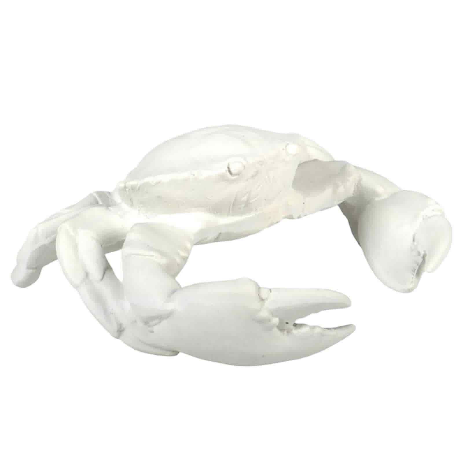 Charmig vit krabba. Krabban är en elegant och stilren inredningsdetalj som perfekt fångar känslan av havet och det maritima temat. Dess rena vita färg ger ett fräscht och sofistikerat intryck, vilket gör den idealisk för att lyfta ett rum med en kustnära atmosfär. Krabbans form är noggrant utmejslad med detaljer som framhäver dess naturliga struktur, från de kraftiga klorna till de böjda benen. Den realistiska designen gör att den lätt kan bli en konversationsstartare i vilket rum som helst. Placera den i ett vardagsrum, en hall eller ett badrum för att genast skapa en känsla av att vara vid havet. Denna krabba fungerar utmärkt ihop med andra marina element, såsom snäckor, drivved eller sandfärgade textilier, och kan enkelt kombineras med både modern och traditionell inredning för att skapa en harmonisk balans.. Material: Poly. Storlek:20x18x7cm