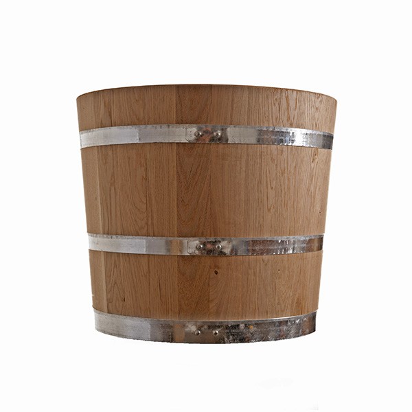 De klassiska galvaniserade banden förstärker konstruktionen och ger tunnan dess traditionella och rustika uttryck. • Diameter: 80 cm • Höjd: 60 cm • Volym: ca 210 liter • Material: 30 mm massiv ek • Plantering, vattensamling, vattenväxter, kallbad