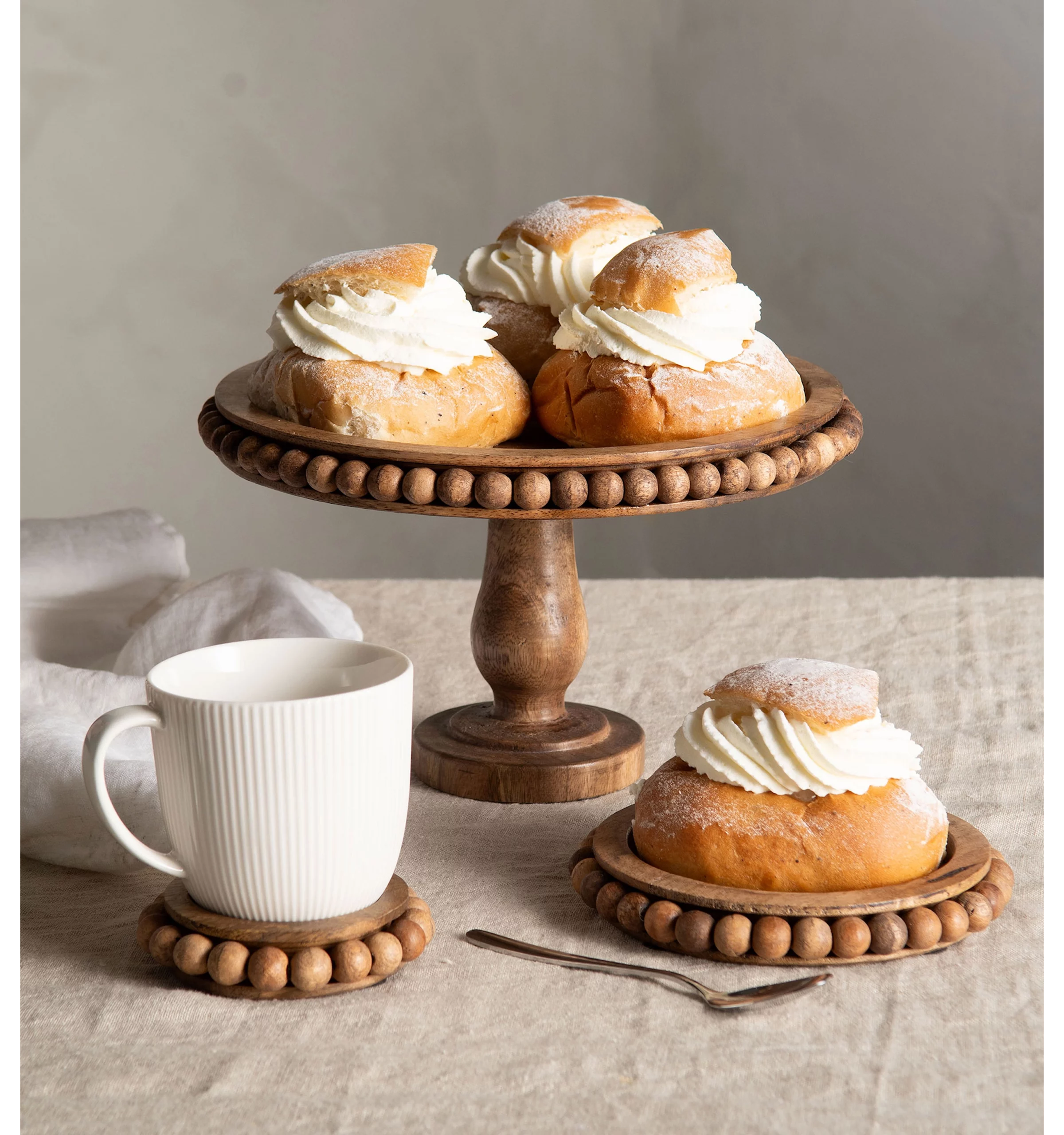 Ett dekorativt fat i massivt mangoträ med varm brun ton och vackert arbetad kant. Den upphöjda formen skapar ett elegant uttryck och gör fatet till ett naturligt blickfång – perfekt för både dukning och dekoration. Fatet passar lika bra för servering av frukt, bröd eller bakverk som för att lyfta dekorativa arrangemang med växter, ljus eller naturmaterial. Den rustika träkänslan kombinerat med klassisk form gör det lätt att placera i allt från moderna miljöer till mer lantliga och botaniska sammanhang. Varje fat har en unik trästruktur som ger ett levande och exklusivt intryck. Detaljer• Material: Mangoträ • Färg: Brun • Diameter: ca 30 cm • Innerdiameter: ca 26 cm • Livsmedelssäker • Ett mångsidigt fat som tillför höjd, karaktär och naturlig elegans till både hem, butik och offentliga miljöer.