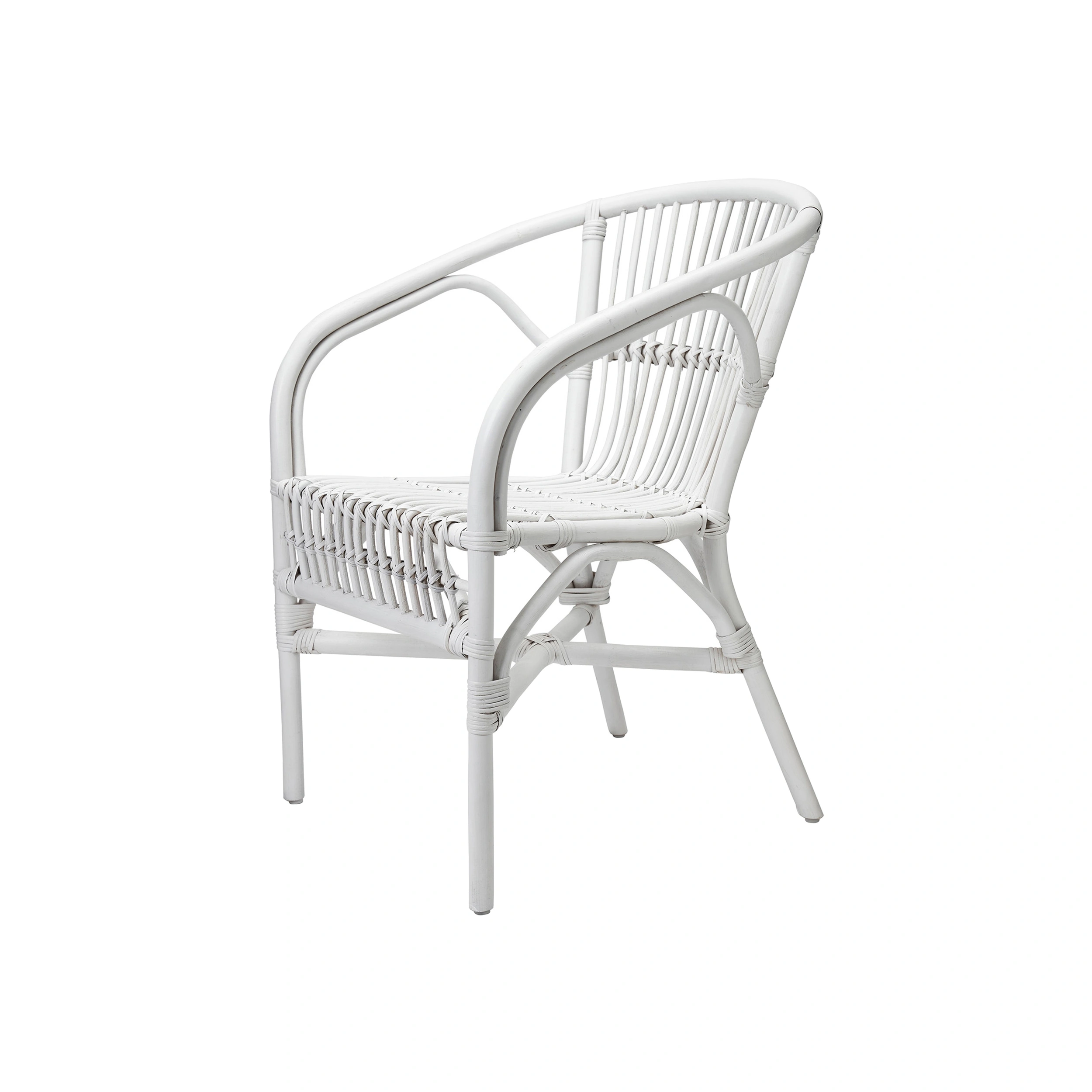 Snygg vit Rottingstol. I serie Teresia. Denna vackra rotting stol har en bohemisk design. Denna snygga stol går lika bra att använda inomhus som utomhus. Tänk dock på att skydda stolen från stora mängder vatten eller fukt så att den håller sig snygg längre. Olja gärna i fåtöljen , vid säsong. Färg: vit Storlek: 58x63x82 cm. Material:Rotting