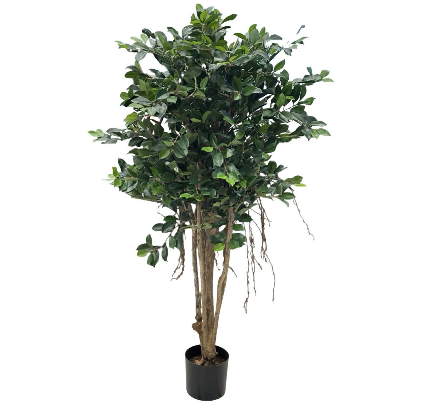 En naturtrogen och mycket fin grönt konstgjord Ficus retusa, av hög kvalité. Bladen som är tillverkade i tyg är UV-beständiga. Detta innebär att bladen kan stå emot solens UV-strålning under en längre tid och därmed håller färgen bättre än andra produkter. De tål även vatten. Krukan på bilden ingår inte. Trädet finns i fler storlekar.