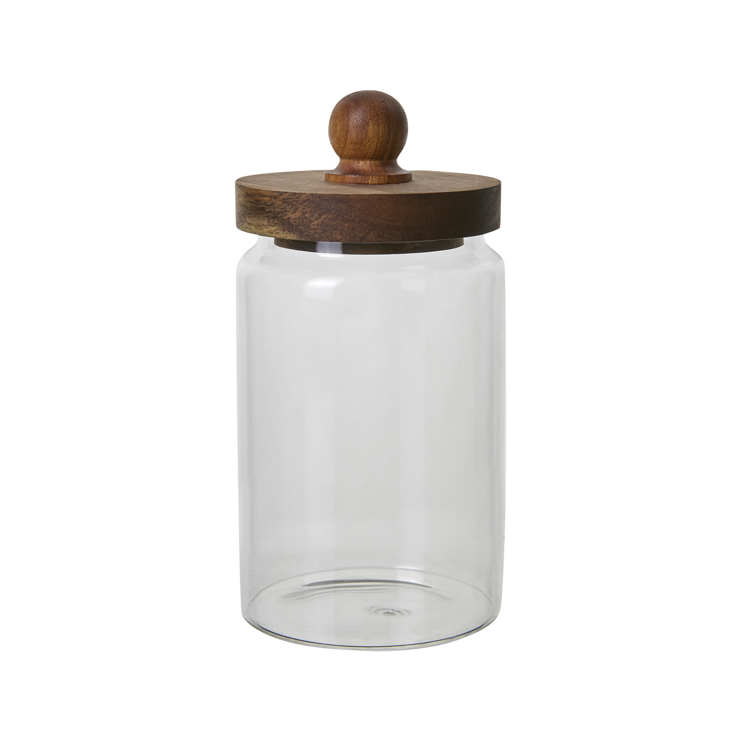 Optimal för hotell- och frukostbufféer. Skandinavisk design – stilren, naturlig och tidlös. Passar både professionella och privata miljöer Färg: Klar / brun Material: Glas med trälock Storlek: Ø9,5 × H17 cm. En genomtänkt förvaringslösning för dig som vill skapa en professionell, harmonisk och inbjudande serveringsmiljö.