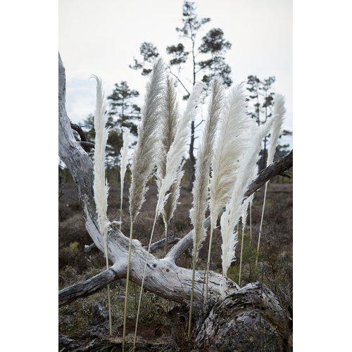 Natur Pampas – 140–160 cm. Detta vackra pampasgräs i naturlig beige/brun ton är en tidlös inredningsdetalj som skapar värme och elegans i rummet. Med en höjd på 140–160 cm är det ett pampigt och iögonfallande inslag som fungerar lika bra ensamt i en hög golvvas som i kombination med andra dekorativa gräs eller torkade växter. Pampasgräset ger en känsla av lyx och lugn och passar perfekt i vardagsrum, hall, sovrum eller på kontor. Det lyfter även fram miljöer som hotell, restauranger och event där man vill skapa en trendig och harmonisk atmosfär. Tips för placering: • Placera i en hög cylinderformad eller konisk vas, gärna i keramik, glas eller metall. • Passar snyggt i hörn av rummet, vid soffgrupper eller i entréer för att ge höjd och volym. • Kombinera gärna flera strån tillsammans för ett fylligare intryck. Hantera och skötsel: • Pampas är ett naturmaterial och kan fälla lätt – skaka försiktigt ut lösa strån utomhus innan placering. • För längre hållbarhet kan man spraya med hårspray för att fixera vipporna och minimera fällning. • Undvik fuktiga miljöer då pampas är en torkad produkt. Mått: • Höjd: ca 140–160 cm • Färg: Natur/beige. Material: Naturmaterial