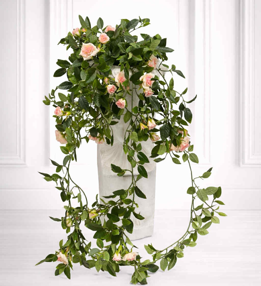 Rosor | Konstgjord bukform häng i kruka rosa 50 cm