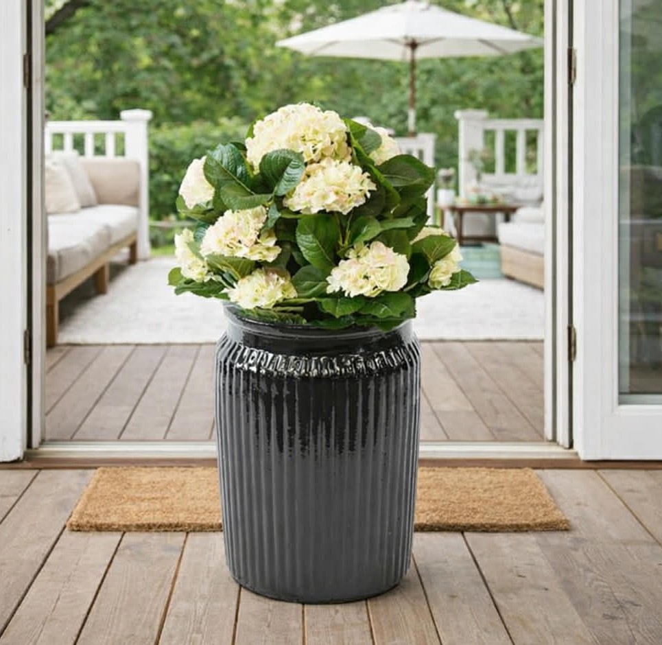 En mycket vacker cream rosa färgad naturtrogen Hotensiabuske för en extra elegant och stilren känsla. Håller sig fräsch år efter år. total höjd 50 cm. Härliga och imponerande. Detta blommande Hortensiaträd har riktig trädstam. Bladen och blommorna är tillverkade i tyg. Bladen är UV-beständiga. Detta innebär att bladen kan stå emot solens UV-strålning under en längre tid och därmed håller färgen bättre än andra produkter. De tål även vatten.