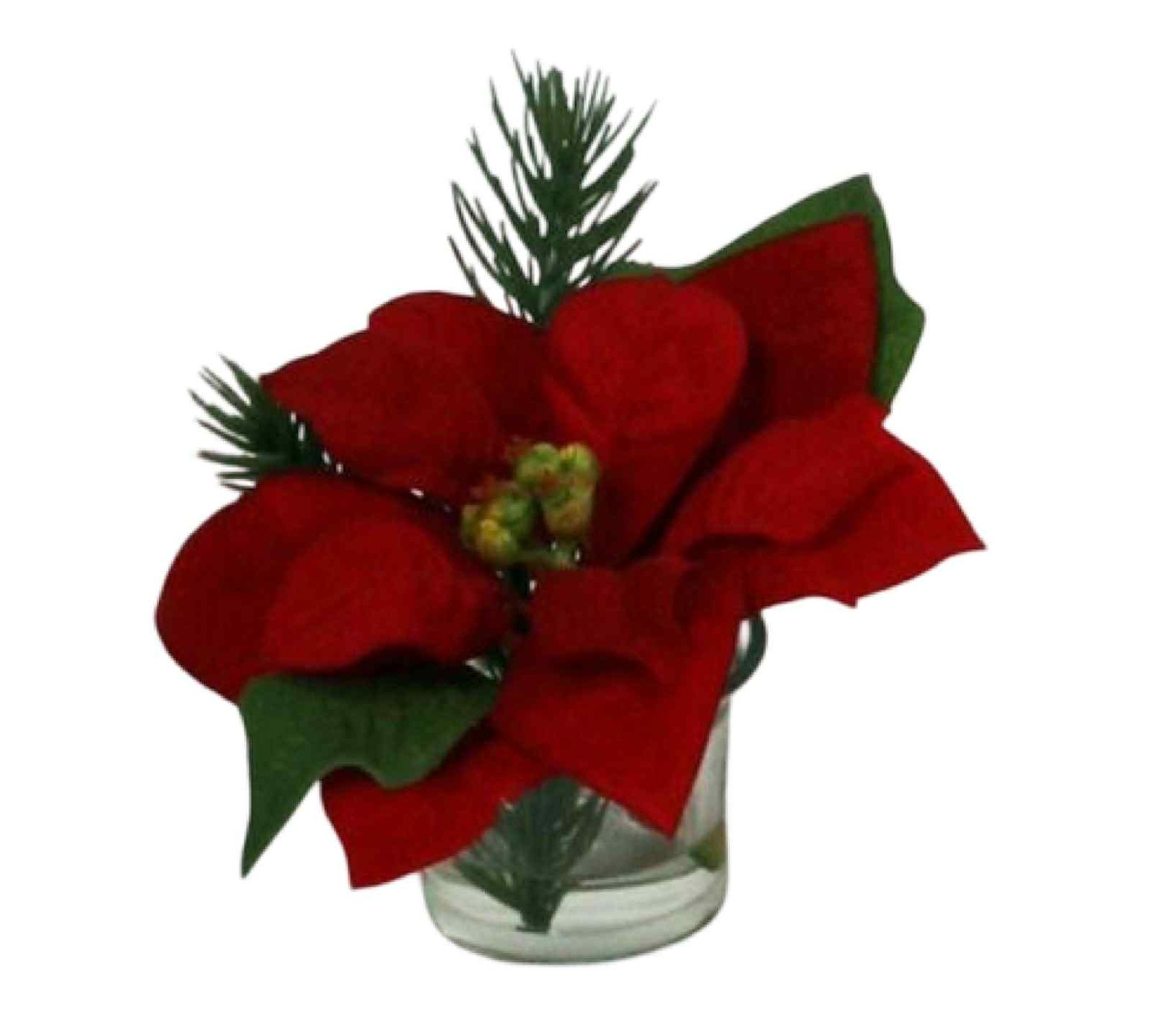 Ge borden en stämningsfull julkänsla med denna färdigmonterade konstgjorda julstjärna, arrangerad i en liten glasvas med realistiskt konstgjort vatten. Den röda blomman och det gröna julgransriset ger en klassisk och varm jullook – perfekt för både restauranger, caféer, receptioner och hemmets alla små ytor. Den kompakta storleken gör den idealisk på små bord utan att ta plats, och eftersom den är helt underhållsfri kan den enkelt plockas fram år efter år utan att tappa färg eller form. Höjd: ca 12 cm • Färg: Röd julstjärna med gröna detaljer • Material: Konstgjorda blommor i glasvas • Bas: Realistiskt konstgjort vatten • Underhållsfri & hållbar – perfekt för återkommande juldekorationer • Passar restaurangbord, bardiskar, hotellrum och julskyltningar