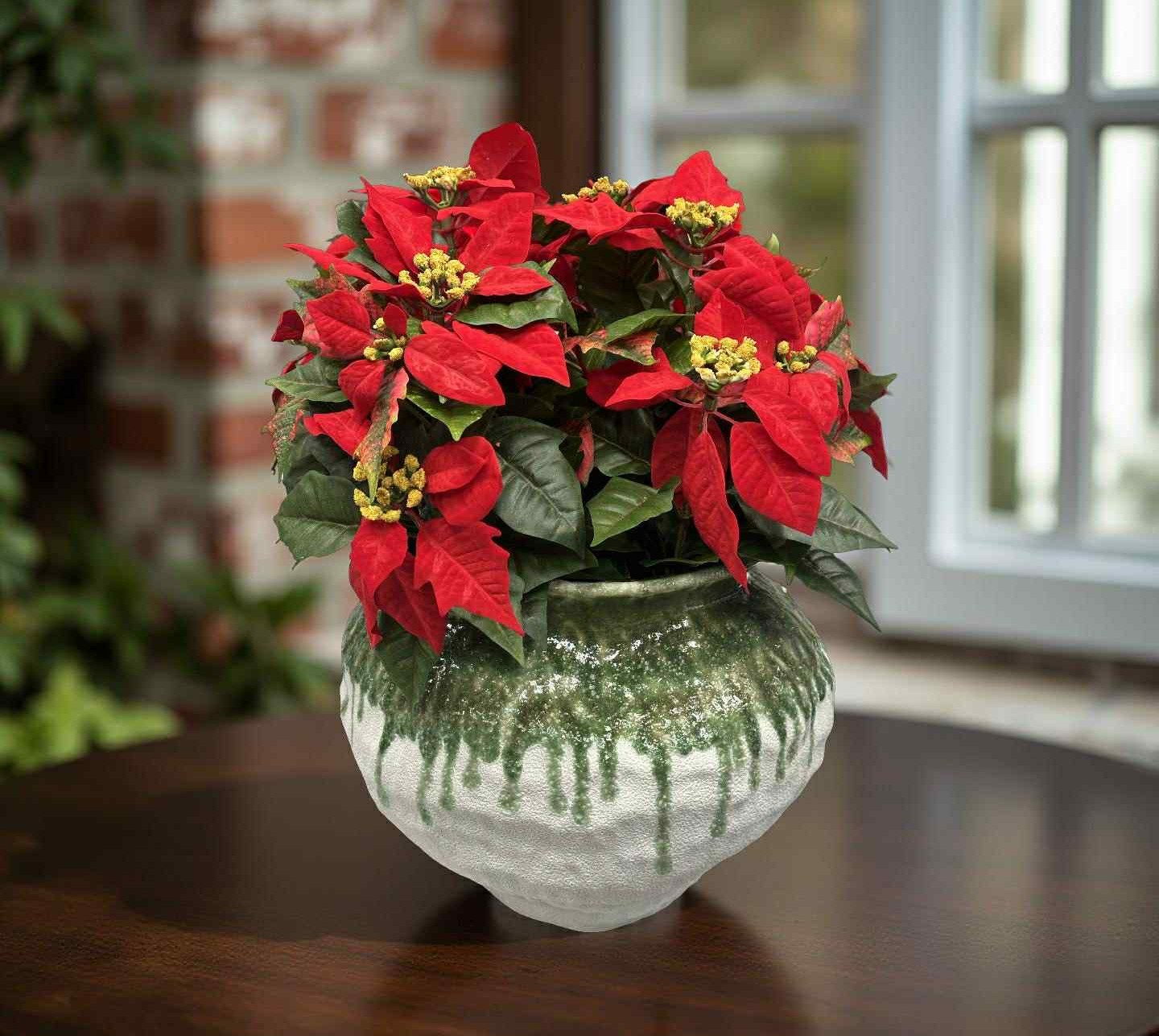 Mycket naturtrogen röd julstjärna. Julstjärnan ger oss den första härliga känslan av att julen som står för dörren. Denna vackra julblomma skapar en fin julstämning som håller år efter år. Dekorera många ocg överallt hemma under julen. Skapa stämning och härlig känsla.
