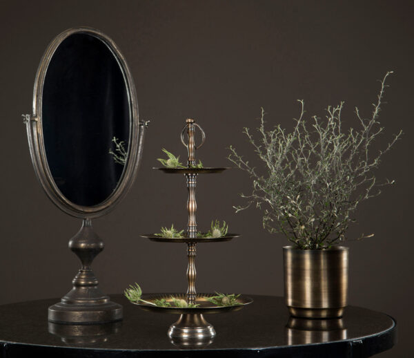 Så snyggt och klassiskt Kakfat & Tårtfat. Genom att servera kakorna på ett kakfat och tårtan på ett tårtfat känns fikat eller bjudningen genast mycket lyxigare. Även snyggt att servera godsaker under jul och andra högtidsdagar för att få en snygg dekorativ dukning. Detta vackra kakfat eller våningsfat har tre våningar. Storlek: 25x45cm Material: Metall ( Antik Guld)