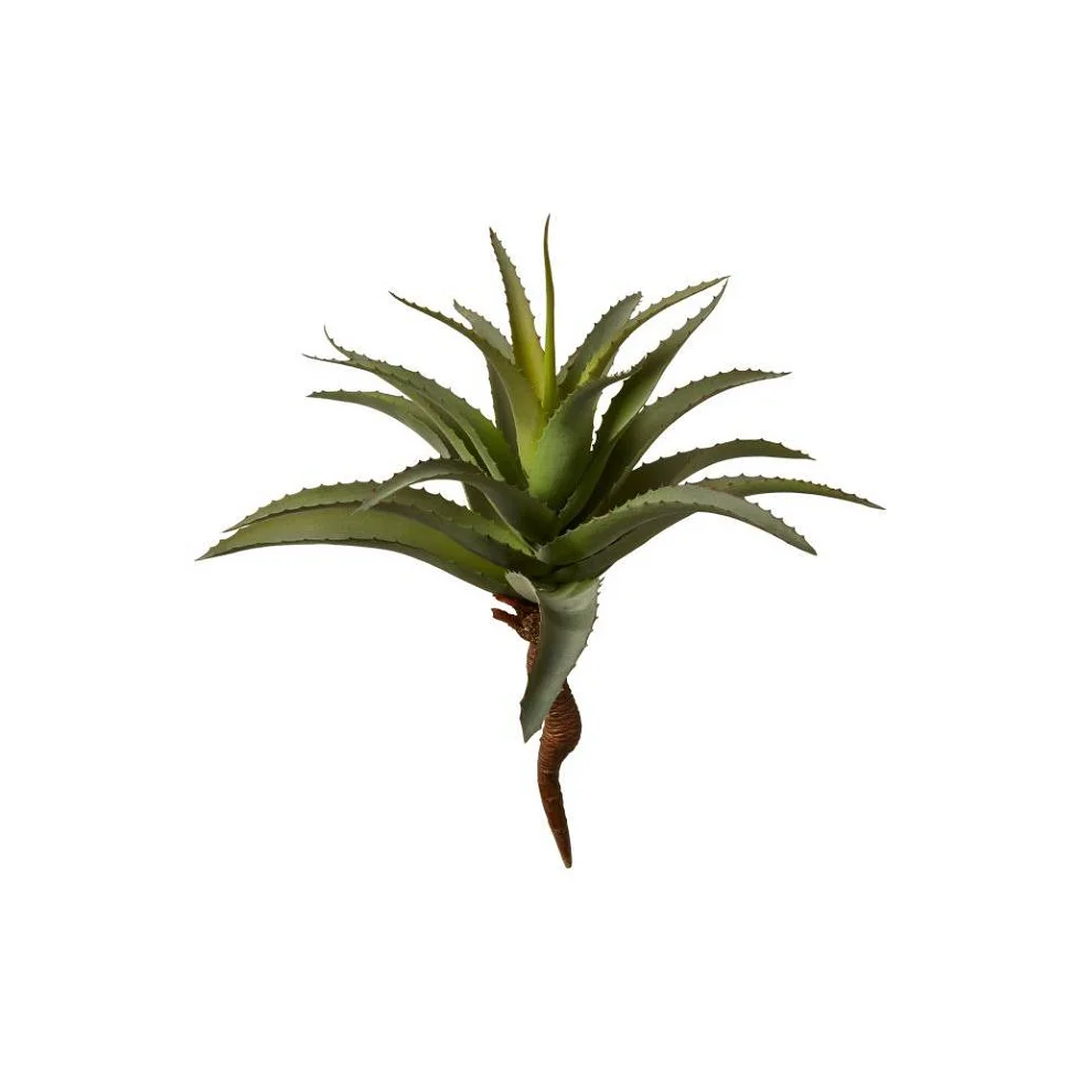 En riktigt naturtrogen Aloe Vera i mycket fin kvalité. Växten har en monteringspinne, det gör att det är lätt att placera och sticka ner i kruka eller ha liggande på bord. Höjd 40 cm. Bladen som är tillverkade i tyg är UV-beständiga. Detta innebär att bladen kan stå emot solens UV-strålning under en längre tid och därmed håller färgen bättre än andra produkter. De tål även vatten.