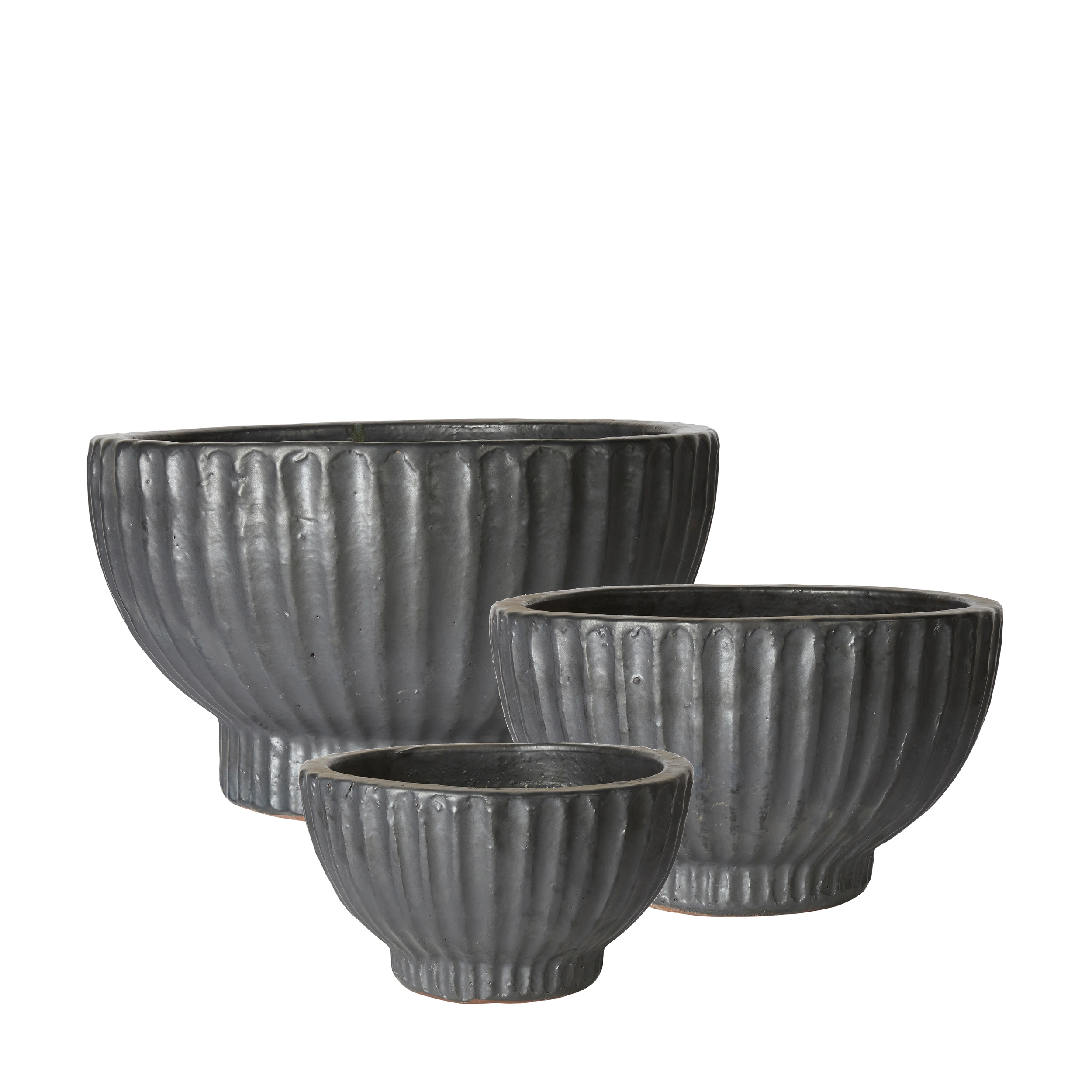 Tillverkade i mixed clay med en elegant antikvit finish och diskreta vertikala ränder som ger en rustik men modern känsla. Passar perfekt för olivträd, prydnadsgräs eller säsongens växter – både utomhus och inomhus. Finns i tre storlekar som harmonierar vackert tillsammans. Detaljer:    •   Färg: Antik Vit    •   Material: Mixed Clay    •   Storlekar: 65×39 cm, 53×32 cm, 41×25 cm    •   Diameter: Ø58, Ø46, Ø34 cm    •   Förpackning: 4 st/enhet    •   Serie: Fedora