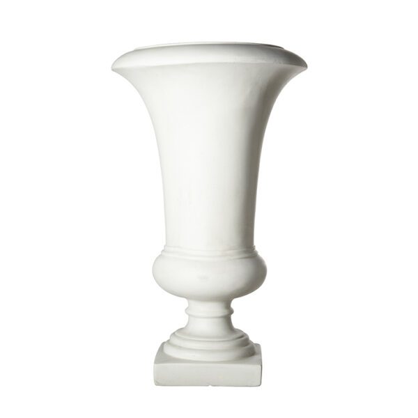 Populära pokalkrukan, vit lyxig snygg kruka som passar på alla ytor. Snygg till entrén och buxbom eller annan vacker växt. Storlek: 37X61cm. Ø26. Material: Fiberlera. Finns även i större storlek
