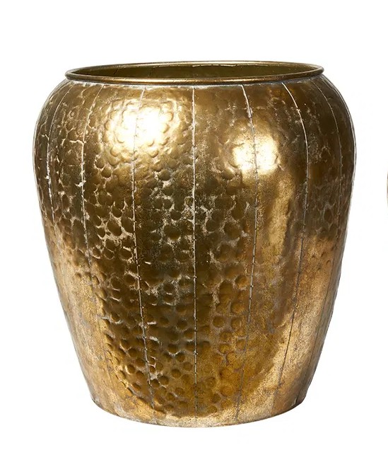 Snygga lyxiga krukor i metall i guld. Något glansig kruka som passar på alla ytor. Stilren snygg blomkruka i en tidlös guldig färgsättning. Snyggt att dekorera med hemma eller på restaurangen eller snyggt på hotellet. Storlek:D48x50cm. Material: Metall