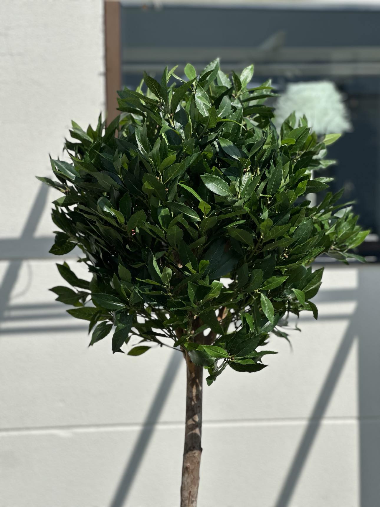 Ett mycket Naturtroget Lagerträd som passar på alla ytor. Snyggt och välgjort Lagerbladsträd. Detta fina träd har riktig trädstam. Bladen som är tillverkade i tyg är UV-beständiga. Detta innebär att bladen kan stå emot solens UV-strålning under en längre tid och därmed håller färgen bättre än andra produkter. De tål även vatten.