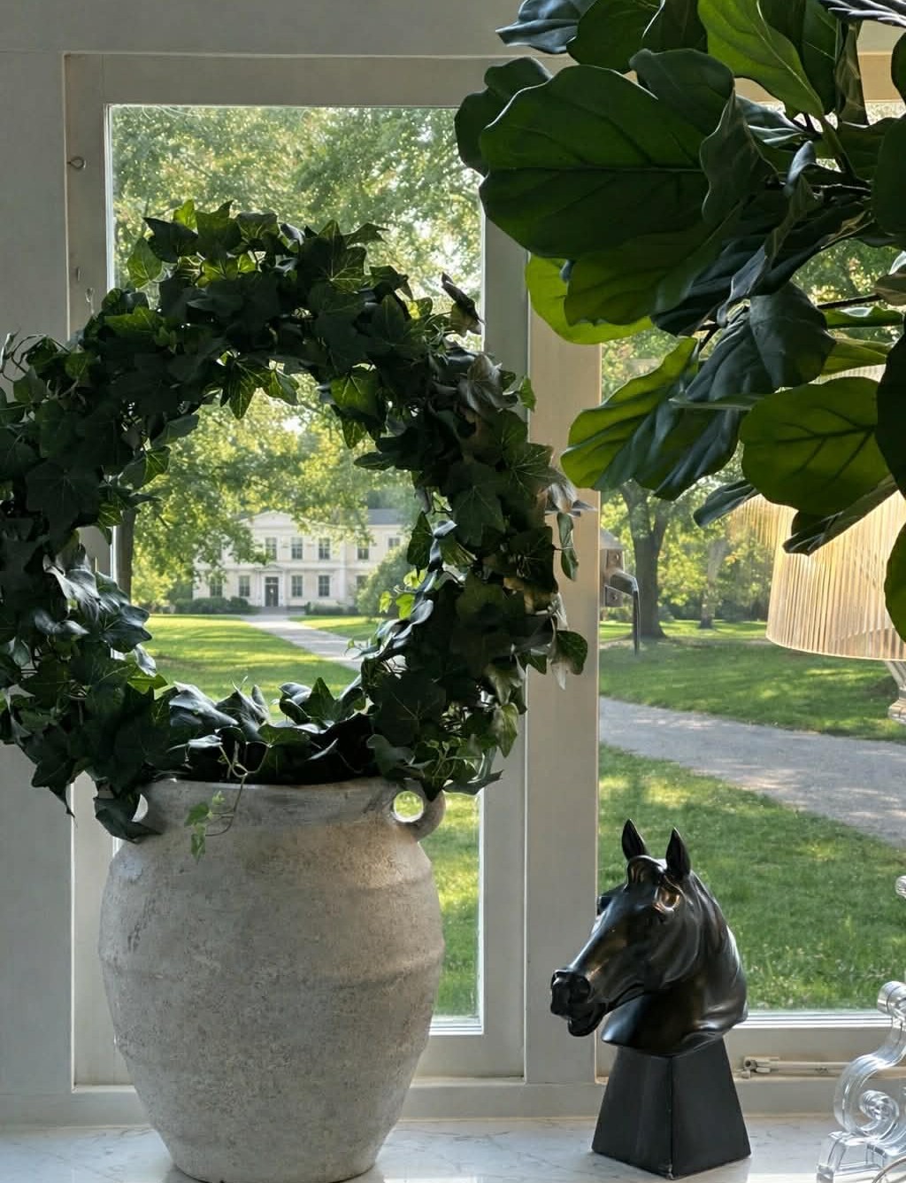 På bilden står murgrönan i en urna ( Ingår inte )