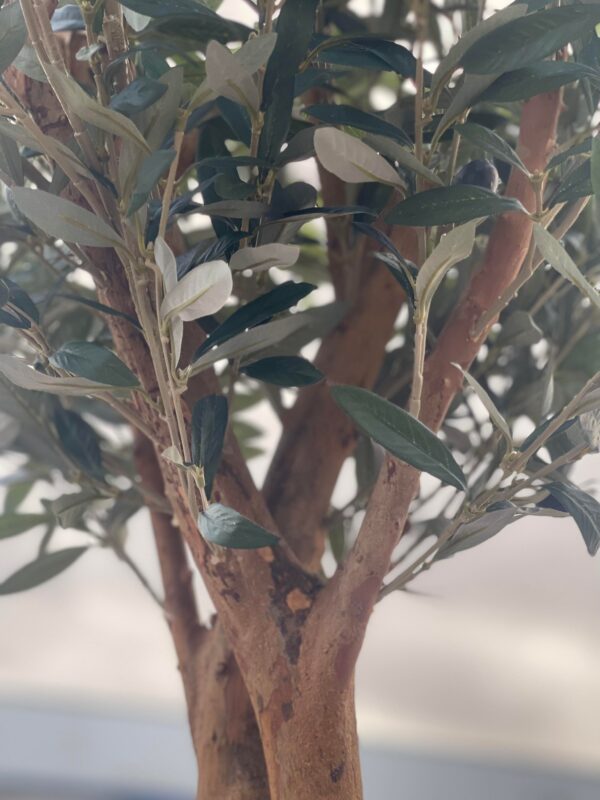 Stort Naturtroget, konstgjort och ett mycket högklassigt olivträd med äkta naturstam. Ett mycket snyggt och välgjort olivträd. Lite knotig stam. Bladen som är tillverkade i tyg är UV-beständiga. Detta innebär att bladen kan stå emot solens UV-strålning under en längre tid och därmed håller färgen bättre än andra produkter. De tål även vatten. Detta träd total storlek 170 cm. Ett riktigt snyggt Olivträd, till bästa kvalitet. Urnan på bilden ingår inte men finns att köpa under krukor & Urnor.
