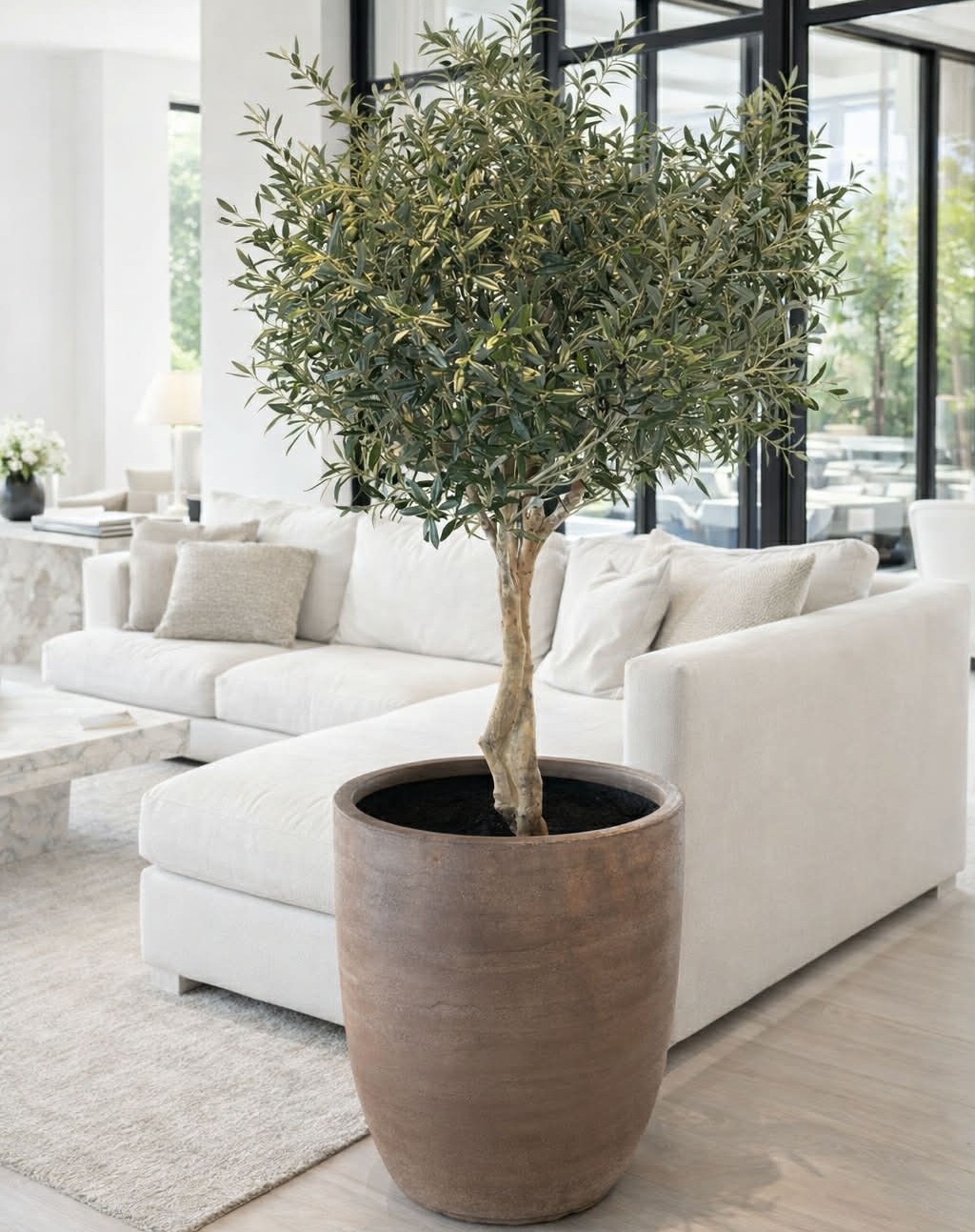 Ett stilrent och underhållsfritt olivträd av hög kvalitet – perfekt för dig som vill skapa en grön och exklusiv miljö året runt.