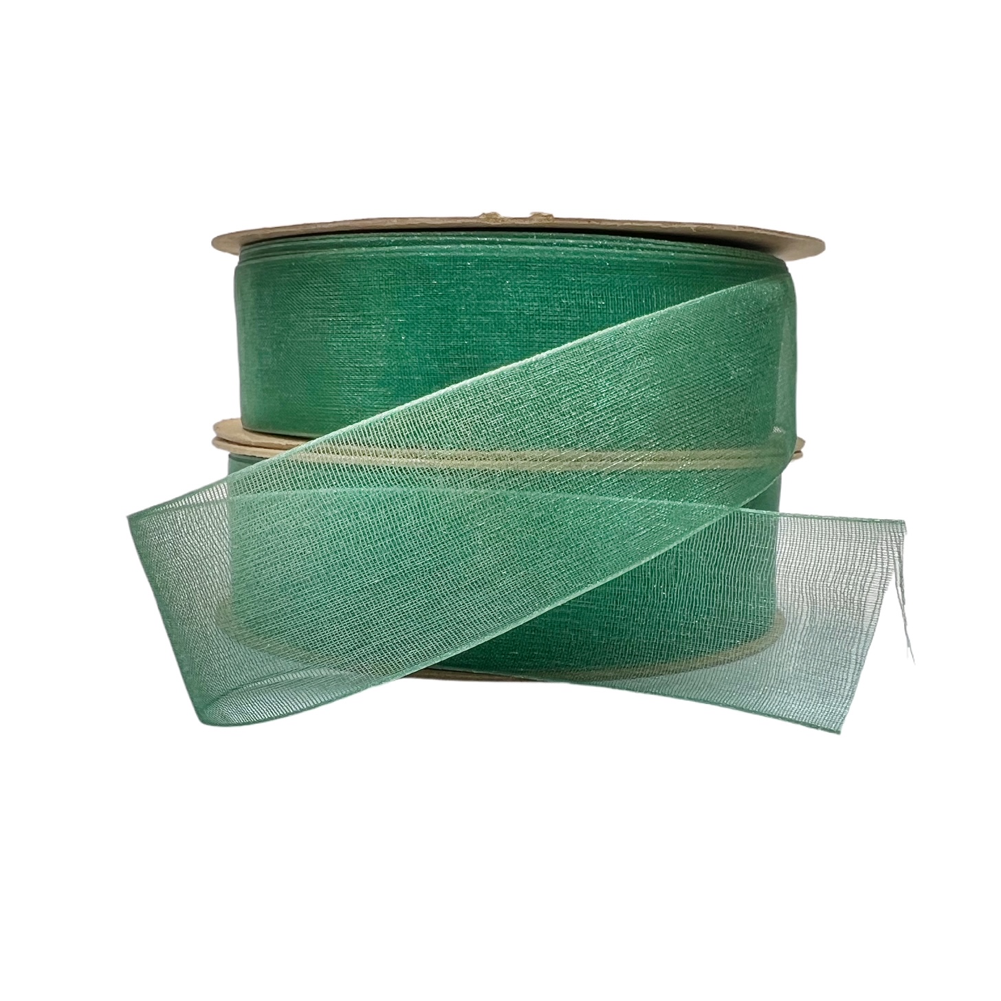 Snygga band i flera olika färger och utförande hittar du hos Webflower. Organzaband är ett tunt och skirt band som ofta används som dekoration vid bröllop och dop. Banden är lätta att använda, blir vackra och ger en lyxig känsla på allt från inbjudningskort, presenter, dukning till buketter med mera. Organzaband är otroligt användbara. Organzasiden är ett mjukt smidigt material som du kan använda till de minsta rosetter till babyhår eller favorithunden. Här har vi 50 m av Organzaband av blågrön färg.