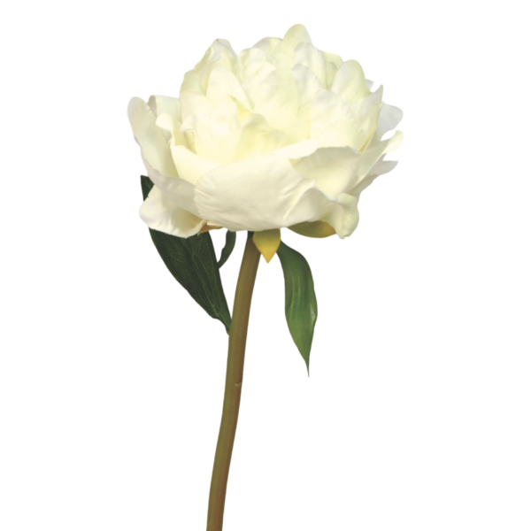 Pionen är 30cm, Blomman har stora, frodiga creamvita kronblad. Stjälken är grön, med flera gröna blad som är realistiskt detaljerade. Bladen är också konstgjorda och har en naturlig form och färg. Placera gärna pion med andra vackra snittblommor eller bara vackra Pion snittblommor i egen vas. Tänk att alltid ha snygga blommor hemma, utan skötsel. Denna vackra Pion ser så verklig ut att du nästan kan känna doften. Webflower har stort urval av olika pioner i olika färger så kombinera dem på nya sätt när du vill. om och om igen. En konstväxt är alltid en ny växt. Bladen är UV-beständiga. Detta innebär att bladen kan stå emot solens UV-strålning under en längre tid och därmed håller färgen bättre än andra produkter. De tål även vatten. Plasten, som används bland annat till grenar, är återvunnen LDPE-plast.