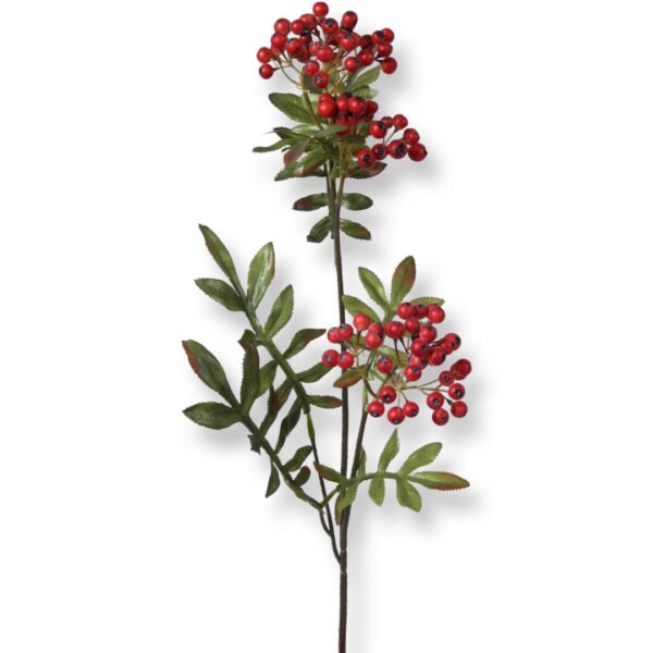 Denna naturtrogna och eleganta kvist av rönnbär är ett utmärkt val för att förhöja höstens eller julens dekorationer. Placera den i en vas för att skapa en stilfull höstdekoration, eller använd den som en del av dina juldekorationer. Denna konstgjorda växt har en total höjd på 70 cm, vilket gör den till ett iögonfallande inslag i ditt hem.