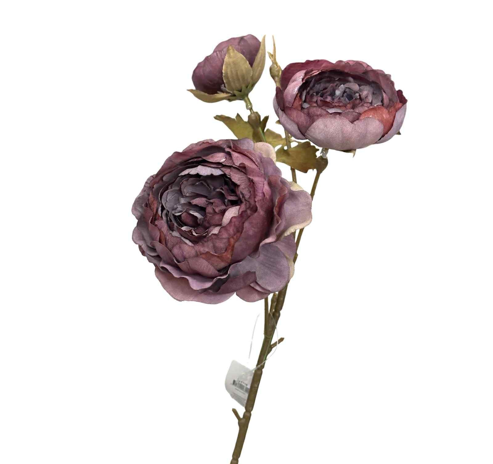 Högklassig snittblomma en naturtrogen ljus bordo ros, med tre rosa rosor. Total höjd 40 cm. Passar fint till ett blomsterarrangemang eller som enskild dekoration i vacker vas. Denna Konstgjorda snittblomma är praktisk i många sammanhang. Den vissnar inte, de kräver ingen skötsel och den nya generationens sidenväxter går knappt att urskilja från äkta. De tål även vatten. Går bra att ställa dessa rosor i vatten, för äkthets känsla.