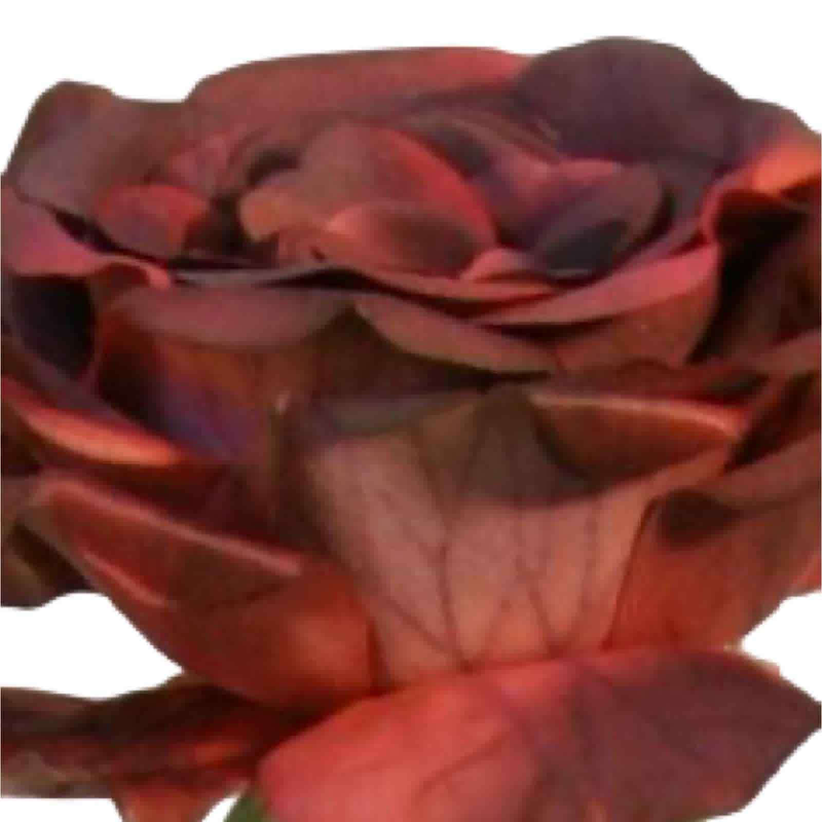 Konstgjord vinröd ros med mörka och djupa nyanser. Rosen har tätt packade kronblad som ger den ett fylligt utseende. De yttre kronbladen är något mörkare, vilket skapar en dramatisk kontrast mot de ljusare inre delarna. Blomman är i full blom, vilket gör att den ser både elegant och levande ut. Rosen är UV-Behandlad vilket gör att den håller färgen längre än många andra produkter. rosen är tillverkad i textil med mjuk struktur och naturligt formade kronblad. Perfekt för buketter, bordsdekorationer, skyltning, event eller inredning där färska blommor inte är ett alternativ. Tålig och underhållsfri – håller formen och färgen länge utan att vissna.