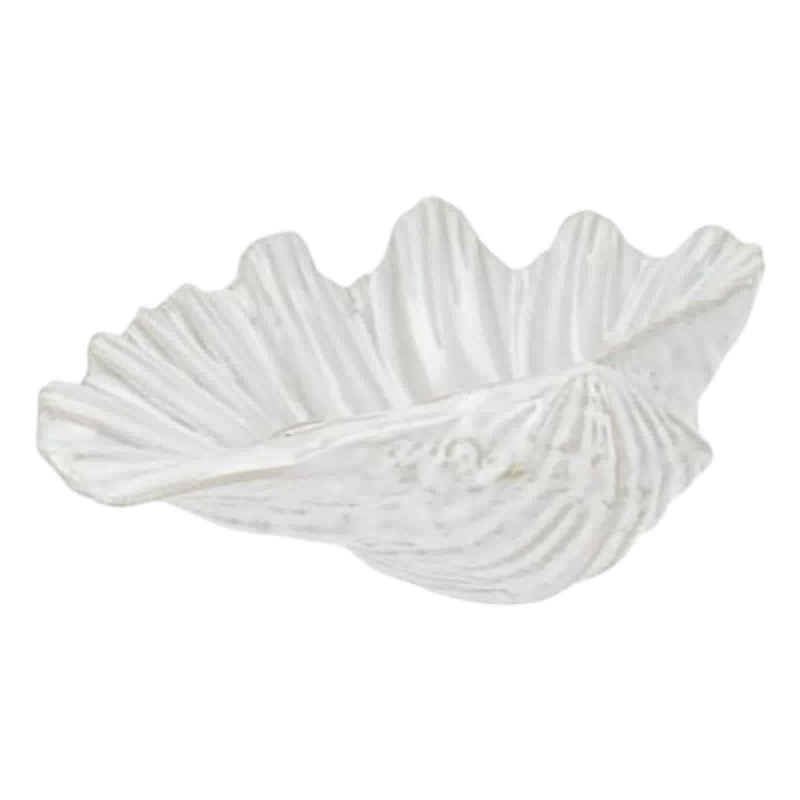 Vacker keramikskål. Skålen är formad som ett ostron och fångar verkligen känslan av havet. Skålen har en elegant design med böljande kanter som efterliknar ostronskalets naturliga form som ger en lyxig och sofistikerad känsla. Den ljusa färgen, en subtil blandning av vitt och creme, speglar solens reflektion på havets yta och skapar en känsla av strandens glitter. Texturen är noggrant utformad för att efterlikna det skrovliga men ändå mjuka utseendet hos ett verkligt ostronskal, vilket förstärker den autentiska marina inspirationen. Denna skål skulle passa perfekt som en del av en havsinspirerad inredning. Material: Keramik. Storlek:18x11x5cm