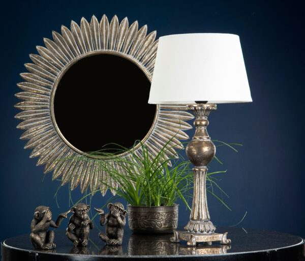 Vacker runt spegel med guldfärgad ram. Ramen består av avlånga mässingblad. Det är inte bara en spegel utan blir även en fantastik väggdekoration dom lyfter hela rummet. . Jättevacker! Materialet är plåt som är målad med mässing färg. Mått: 75 cm i diameter. På webflower hittar du vackra produkter som inspirerar och bidrar till vackert och trivsamt hem.