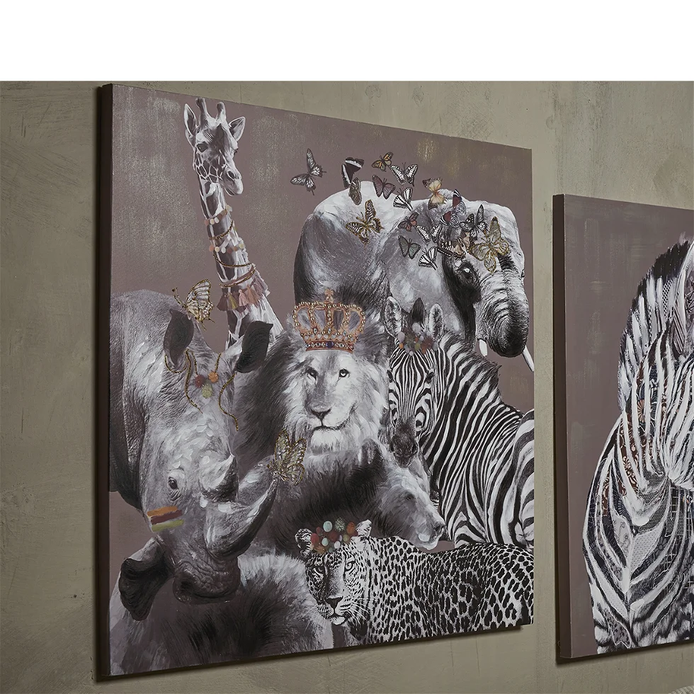 Ögonfallande konst med bild av vackra vilda djur. Ett livfullt motiv med dova färger och lustfyllda detaljer. En stor tavla att dominera din inredning med. Storlek: 80x80cm. På Webflower hitta man ett stort urval av bilder, tavelramar och skyltar, som hjälper till att skapa en mycket speciell och unik inredning. Canvasbilder med fina motiv – som bidrar till din stil. Passar bra att kombinera tillsammans med annan tavla. Som https://www.webflower.se/produkt/tavla-lei-bild-zebra-120x80cm-duk/