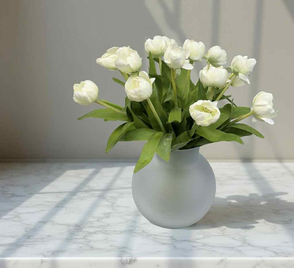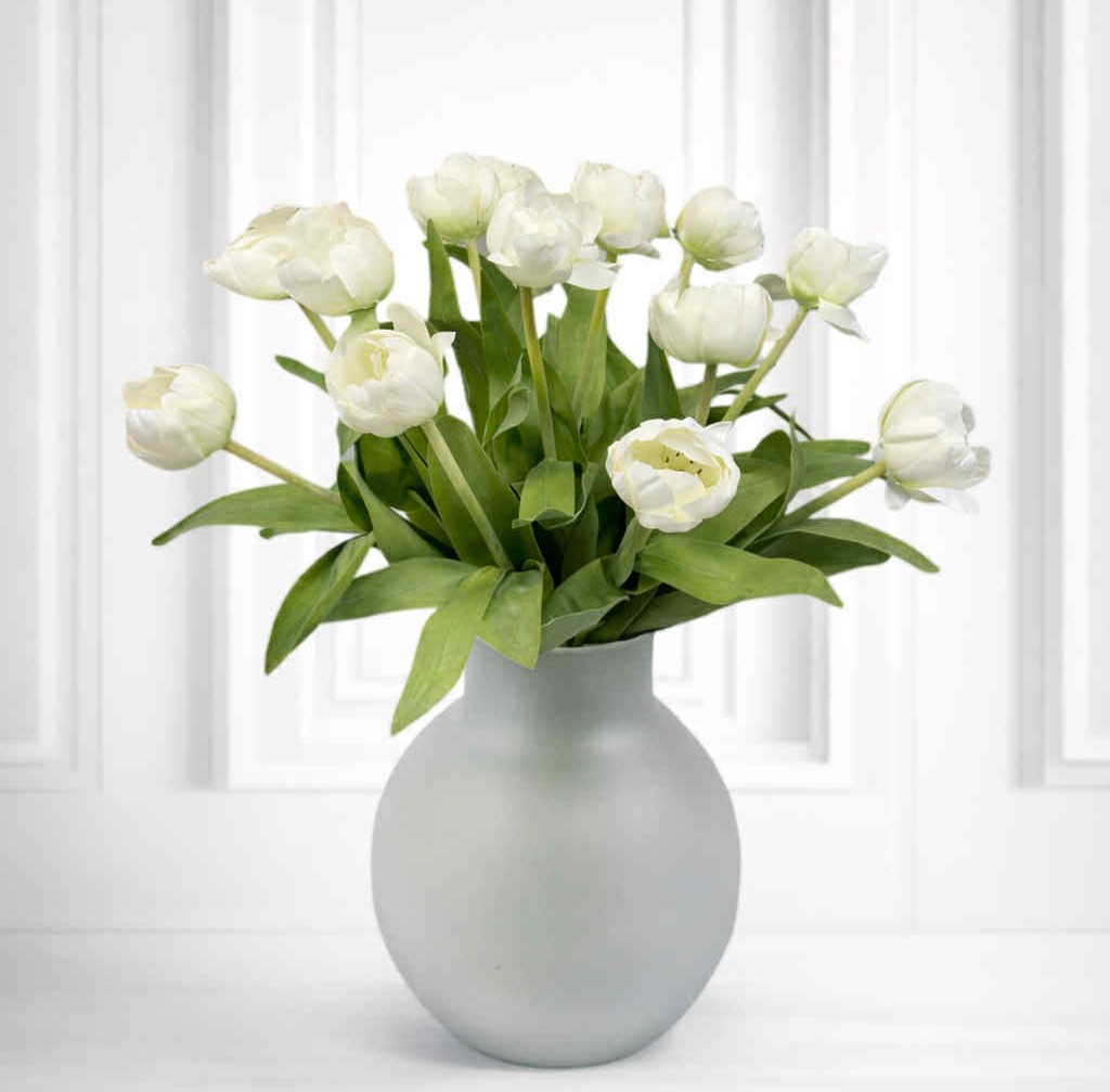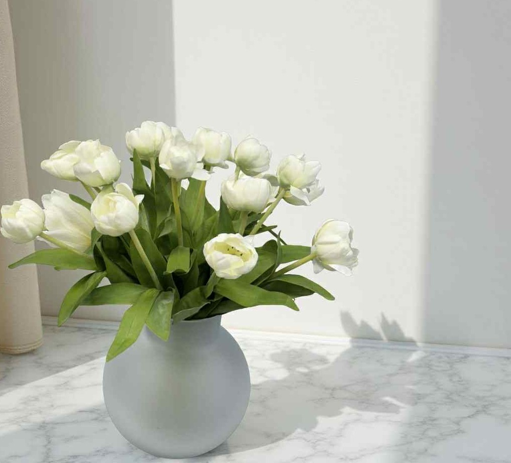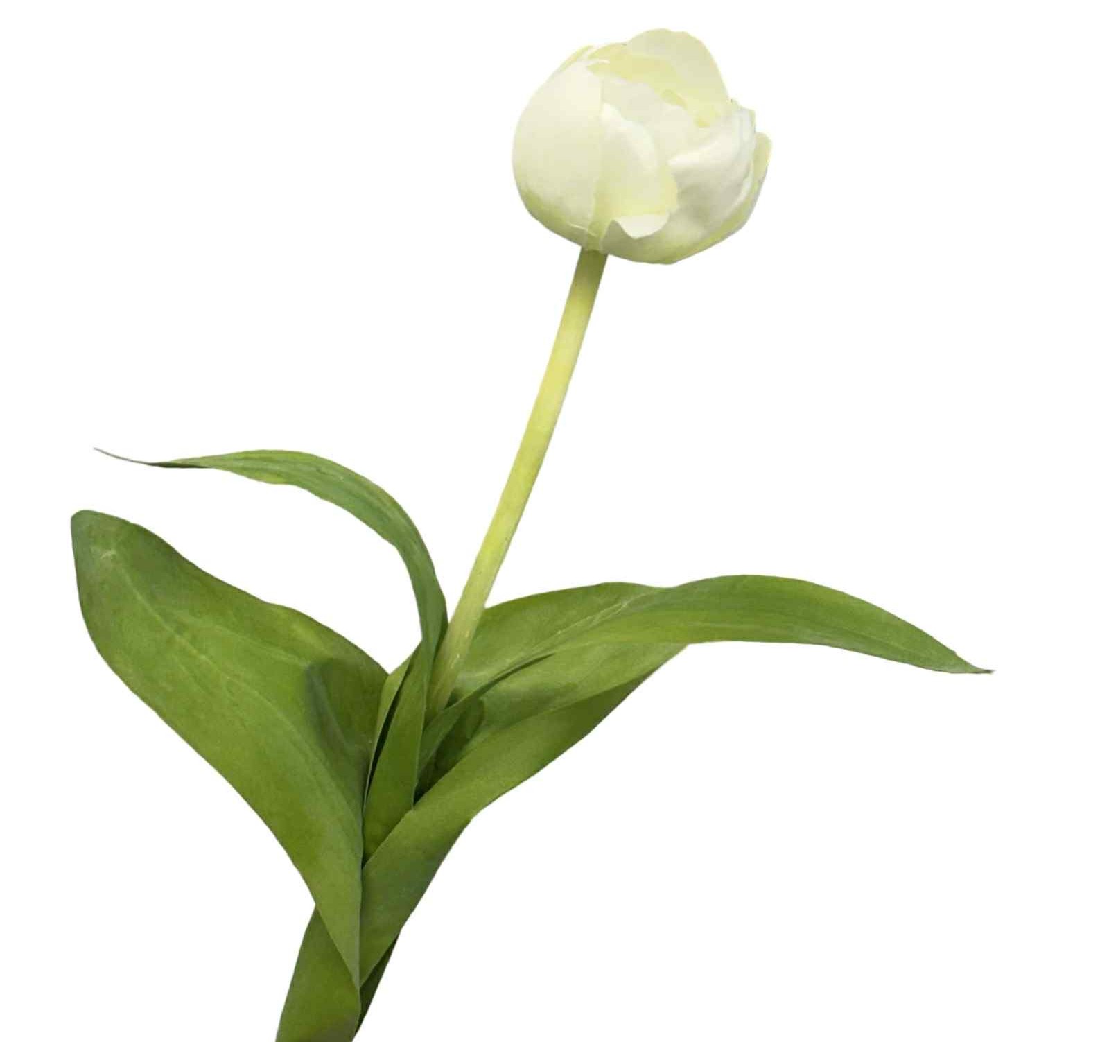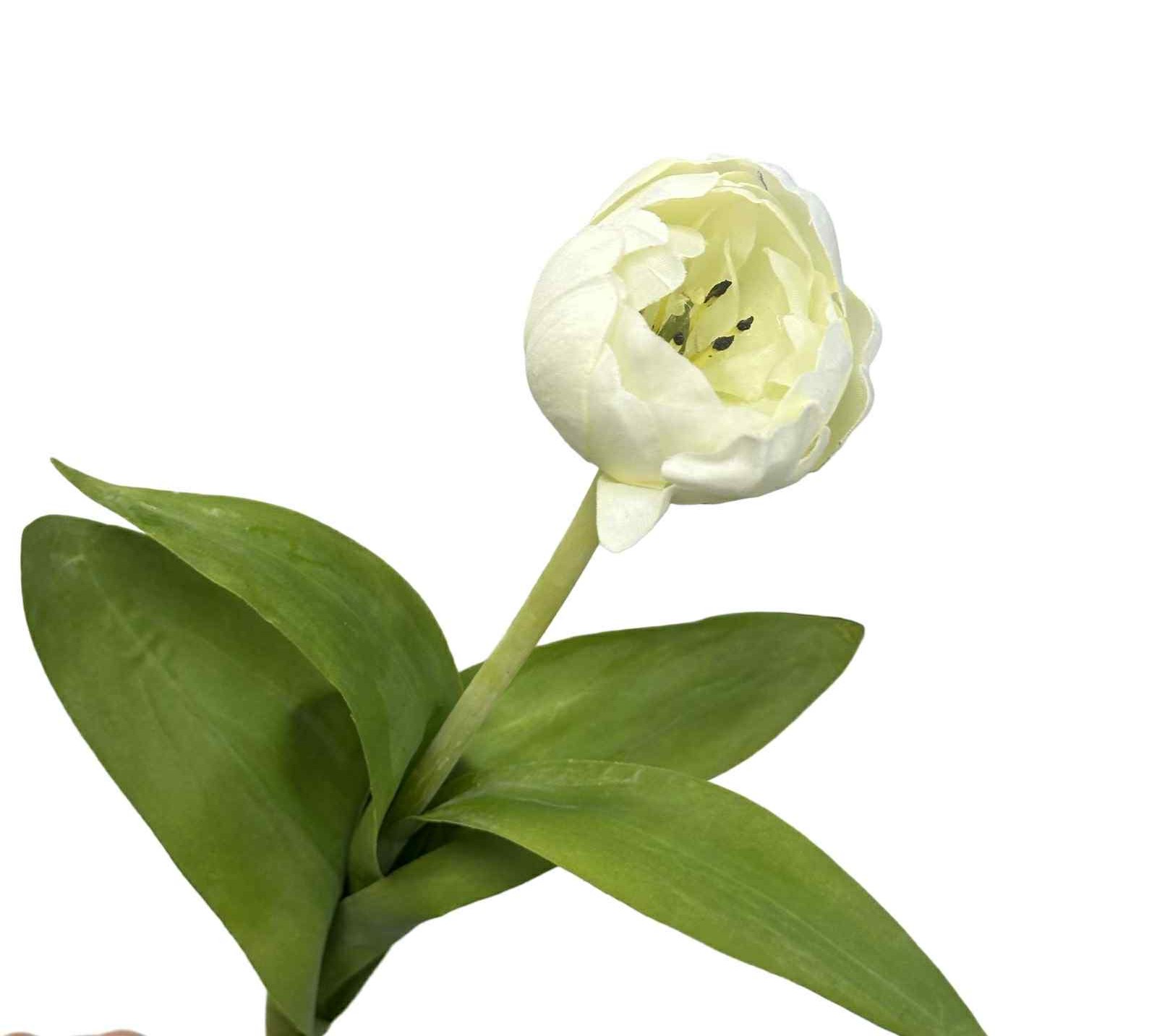 En tidlös klassiker med exklusiv känsla. Denna högklassiga konstgjorda tulpan i vit crème är skapad med stor detaljrikedom för att efterlikna en äkta tulpan – både i form, färg och uttryck. Med sin naturtrogna finish ger den ett elegant och fräscht intryck året om, helt utan skötsel. Tulpanen är 45 cm hög och passar perfekt i både moderna och klassiska miljöer. För extra realism kan den placeras direkt i vatten, vilket skapar en ännu mer levande och exklusiv känsla – idealiskt för restauranger, hotell, kontor eller hem med höga krav på estetik. Snygg som den är, men ännu vackrare i en bukett av flera likadana tulpaner eller i en stilfull mix med andra färger för ett mer personligt uttryck. Fördelar: • Exklusivt och naturtroget utförande • Vacker vit crème-ton som passar alla miljöer • Kan placeras i vatten för extra realism • Underhållsfri – alltid perfekt • Perfekt ensam eller i arrangemang Ett självklart val för dig som vill ha lyxig blomsterkänsla utan kompromisser.