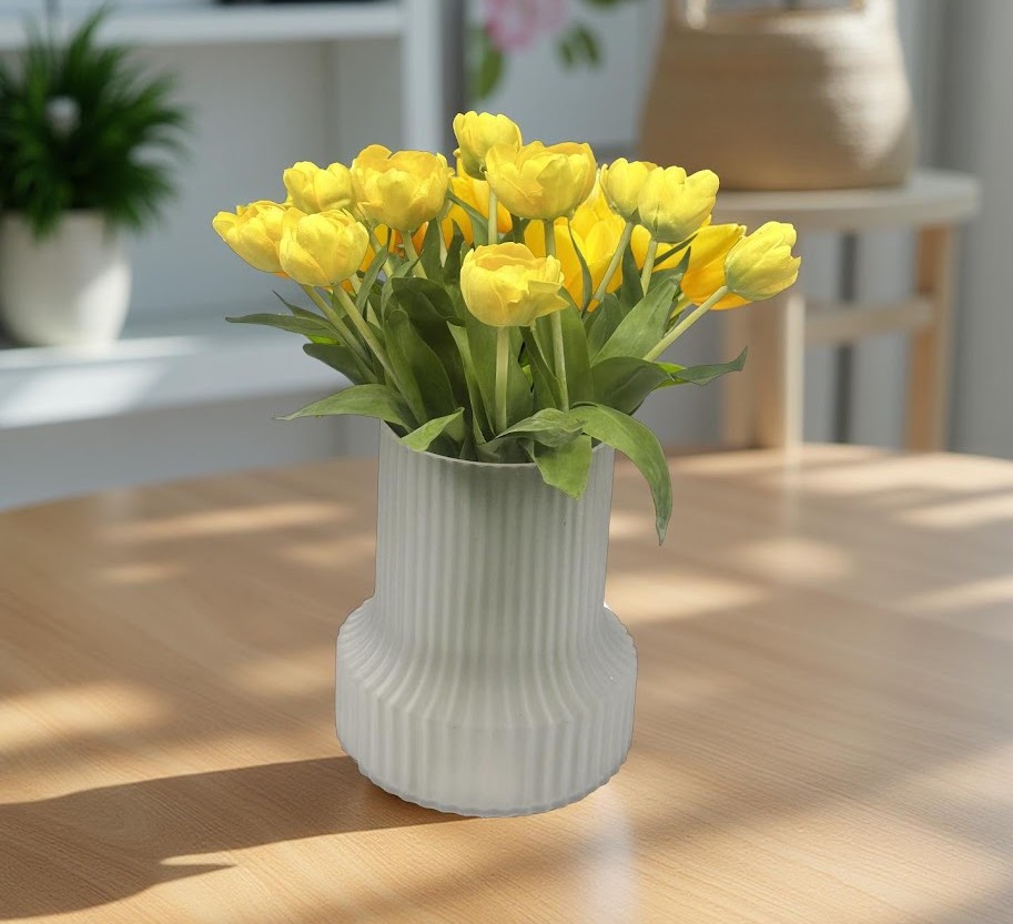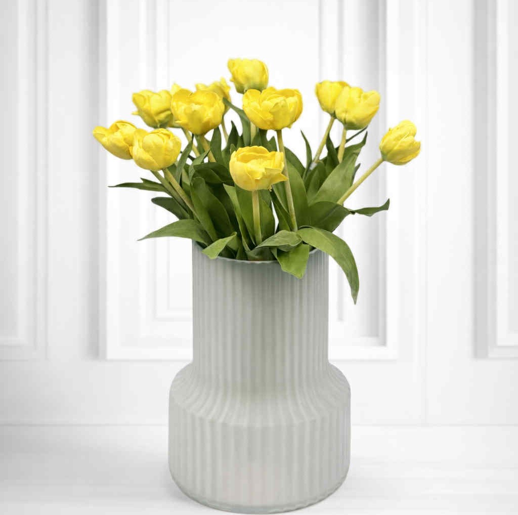 Tulpanen är svenskarnas favoritblomma nummer ett . Här en härlig gul utslagen gul Tulpan. Lättskött och håller sig snygg år efter år. För mer naturligt utseende, går det bra att placera dem i vatten. Ju fler i vas, ju mäktigare. Snyggt med hög vas som gör att du får upp dina tulpaner på höjden. Säljes styck eller 12-pack