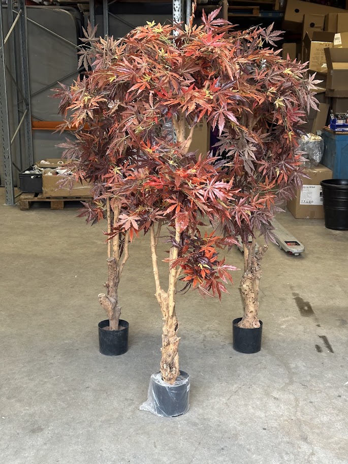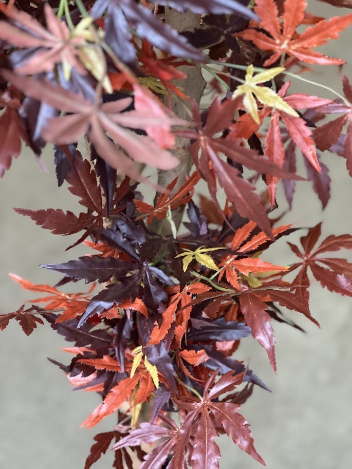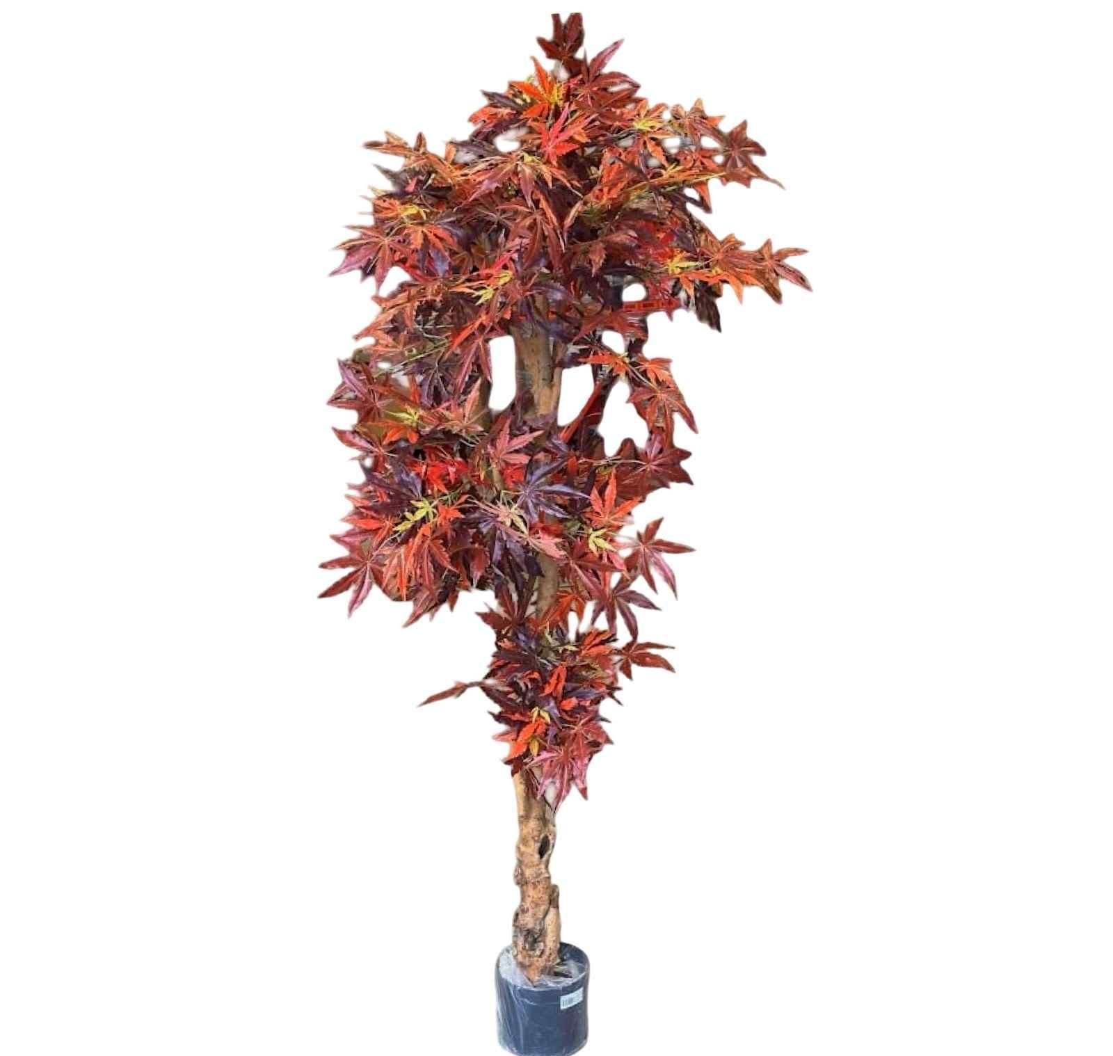 Skapa en varm och exklusiv atmosfär med vår naturtrogna japanska lönn i fantastiska höstfärger. Med en äkta trädstam och detaljerade blad i tyg ger detta träd ett elegant och levande uttryck – perfekt för event, mässor, butiksmiljöer och dekor vid fotograferingar. Bladen är UV-beständiga och vattenresistenta, vilket gör trädet lika väl lämpat för ljusa inomhusmiljöer som för väderskyddade utomhusplatser. Höjd: 170 cm.