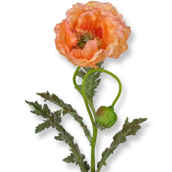 Här har vi en stor och en vallmo med stor Aprikos blomma med ca en diameter på 15 cm. Fin och naturtrogen snittblomma. Härlig sommar Vallmo som blir vacker i stor hög vas, eftersom denna vallmo är 100 cm hög. Vackert med ett prakt av Vallmo. De tål vatten. Ha gärna vatten i vasen för mer naturtrogen känsla. Alla växter från Webflower är noga utvald från vårt stora och fantastiskt fina sortiment av högklassiga konstväxter. Vallmon finns i flera fina färger och utförande! Storlek: 100 cm