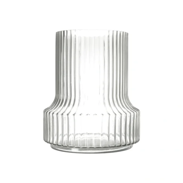 Denna snygga vas Groove, med lyxigt utseende är en snygg och stilren klar vas med veckat mönster. Snyggt och pampigt att dekorera den med sin favoritbukett eller några enkla kvistar. En snygg vas betyder mycket och kan lyfta vilken bukett som helst. Perfekt stilren vas på hotellet eller restaurangen. Lätt att hålla ren och har en lyxig form. Höjd 25 cm Diameter 32 cm Diameter ø 15 cm. Material glas.