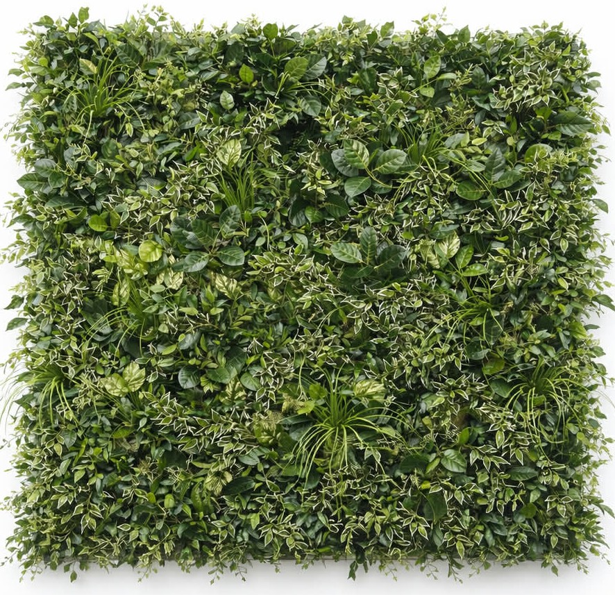 Skapa en exklusiv och levande känsla med denna stilrena växtvägg, där frodiga gröna toner kombineras med mjuka crèmefärgade detaljer. Resultatet är en harmonisk och modern växtvägg som tillför både karaktär och elegans till restauranger, hotell, kontor, butiker och andra offentliga miljöer.